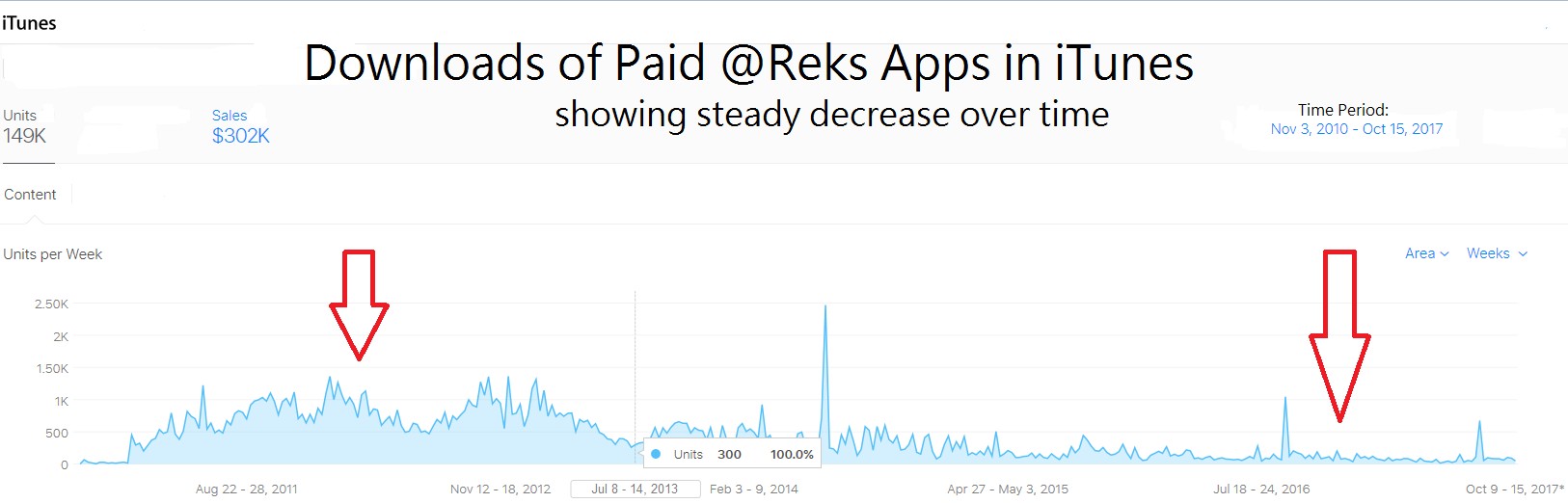 Overall, the trend in iTunes has shown that downloads of paid apps has reduced over time. At the same time the downloads of free apps has increased over time as can be seen by the graphs below.