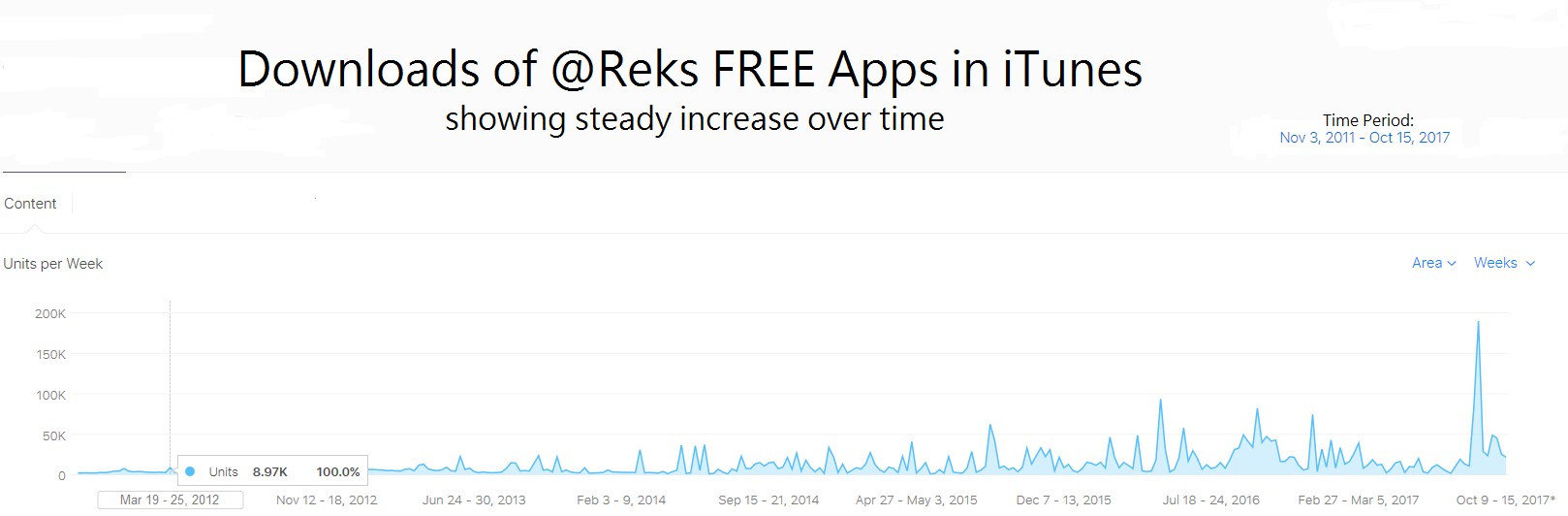 Today @Reks has over 44 iOS educational apps. The number of apps is still growing. There have been a little over 4.1 million downloads both paid and free. Special pride take bulk educational purchases made worldwide.